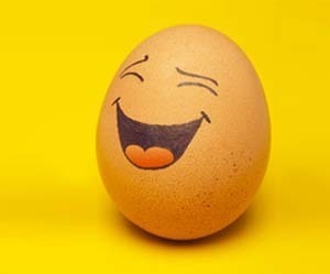 assim oferecemos uma troca: Uma gargalhada por cada ovo. Os dois